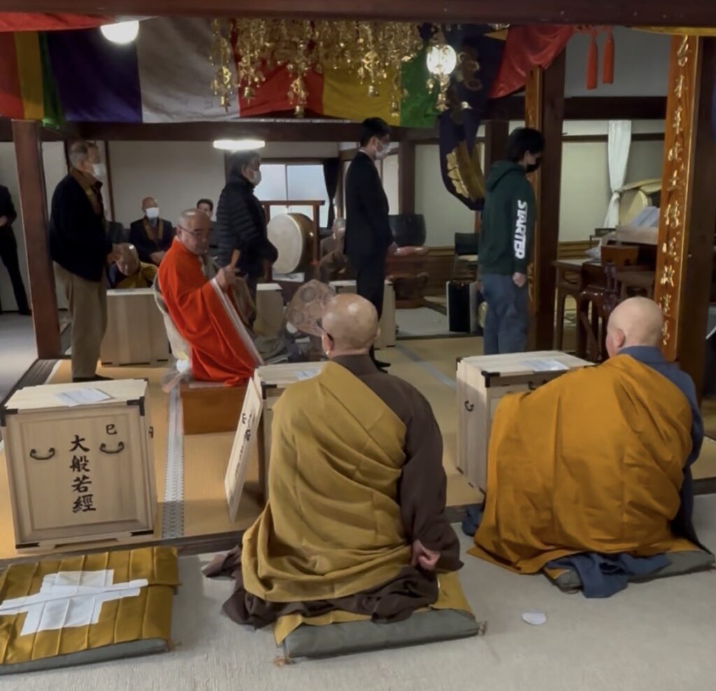 2026年1月13日、2.3日前の雪が境内地に残る中、大般若ご祈祷会並びに厄除け祈願を奉修いたしました。早朝より吉祥寺にある仏様や神々にお赤飯、お水、お花をお供えして本堂を整え、厳かながらも力強く響き渡る祈祷太鼓やかねに合わせ6名のご寺院様による大般若経600巻の転読が行われました。年の始めに皆様の幸せや家庭円満で安寧をお祈りいたしました。